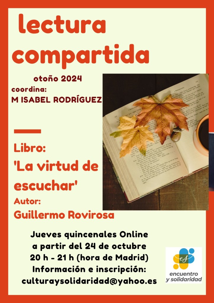 No se trata de un club de lectura, ni de leer para tener más información, ni de consumir lectura. Te propongo tener una experiencia de lectura lenta que dará comienzo el 24 de octubre y terminará cuando finalice el libro (en torno de febrero). El objetivo es gustar y saborear de una lectura lenta y sosegada. En este caso será en torno a la importancia de la escucha y de cómo vamos descubriendo día a día que aún nos quedar por aprender. Gracias a Dios disponemos de toda una vida para ello.
