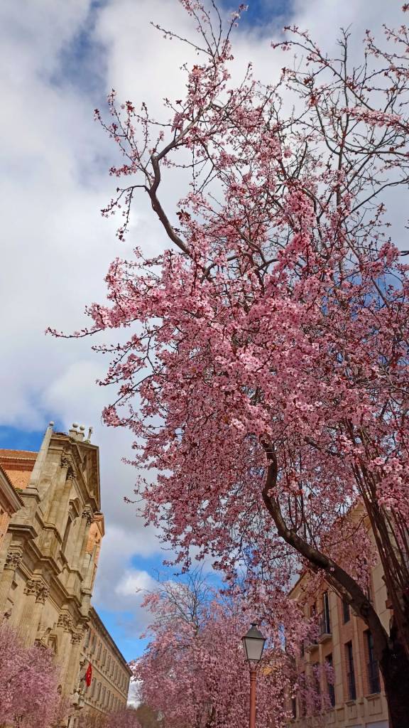 Fotografía de Enrique Medina, ciruelo rojo en calle Libreros, Alcalá de Henares